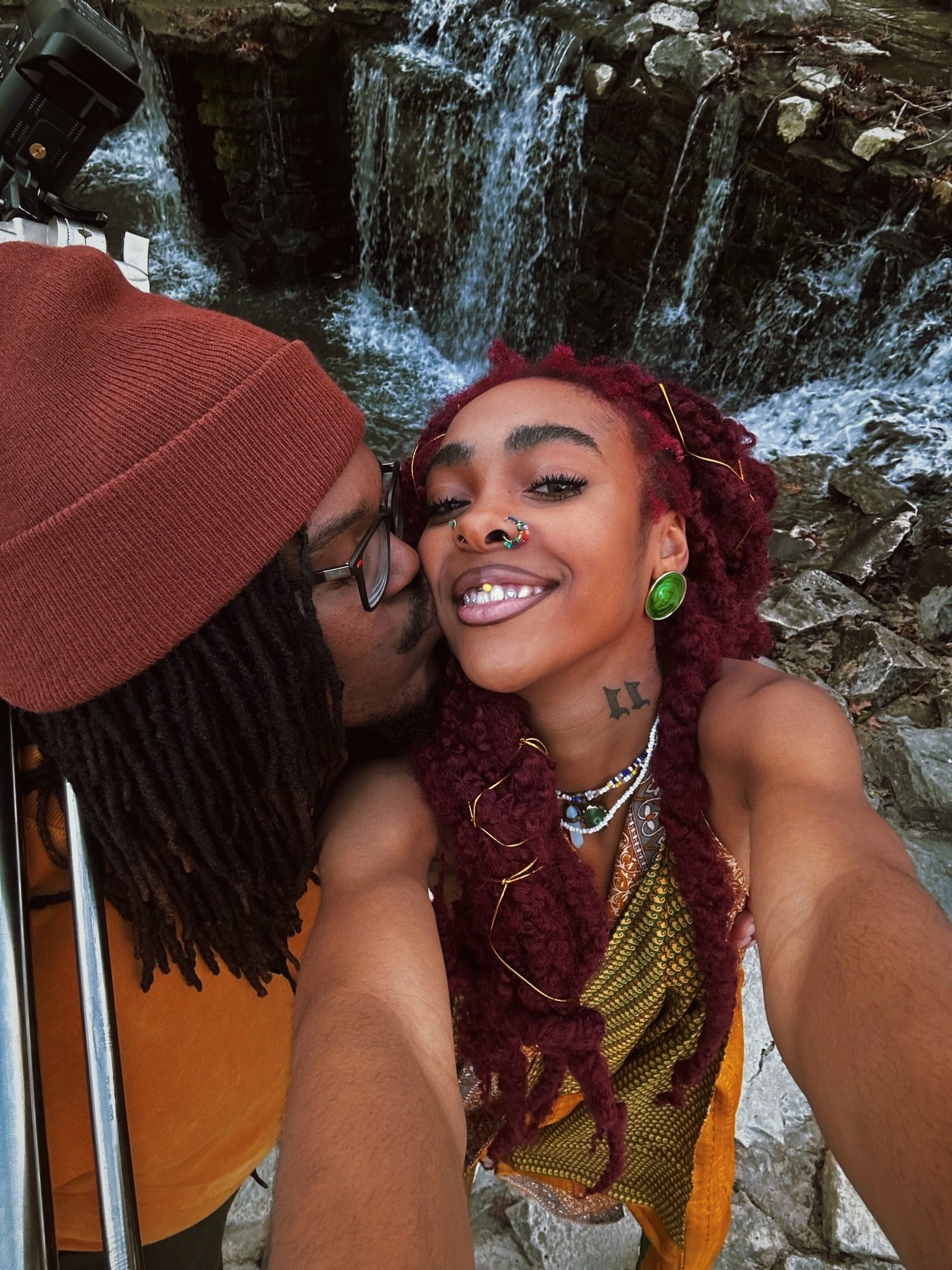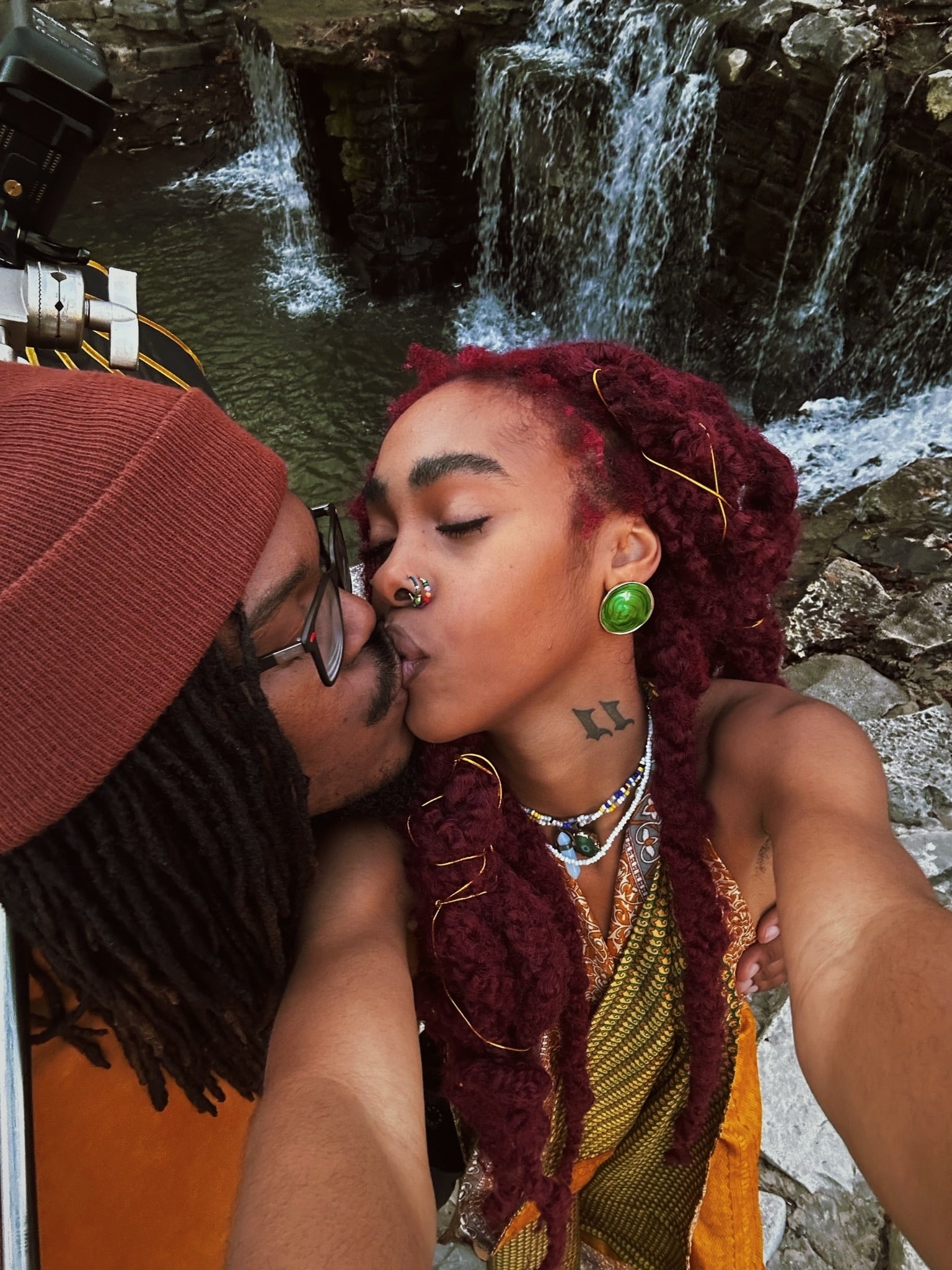 Unisex “Jaded green circle earring” ( Green antique earring, Gold lining accents with a marble polish )