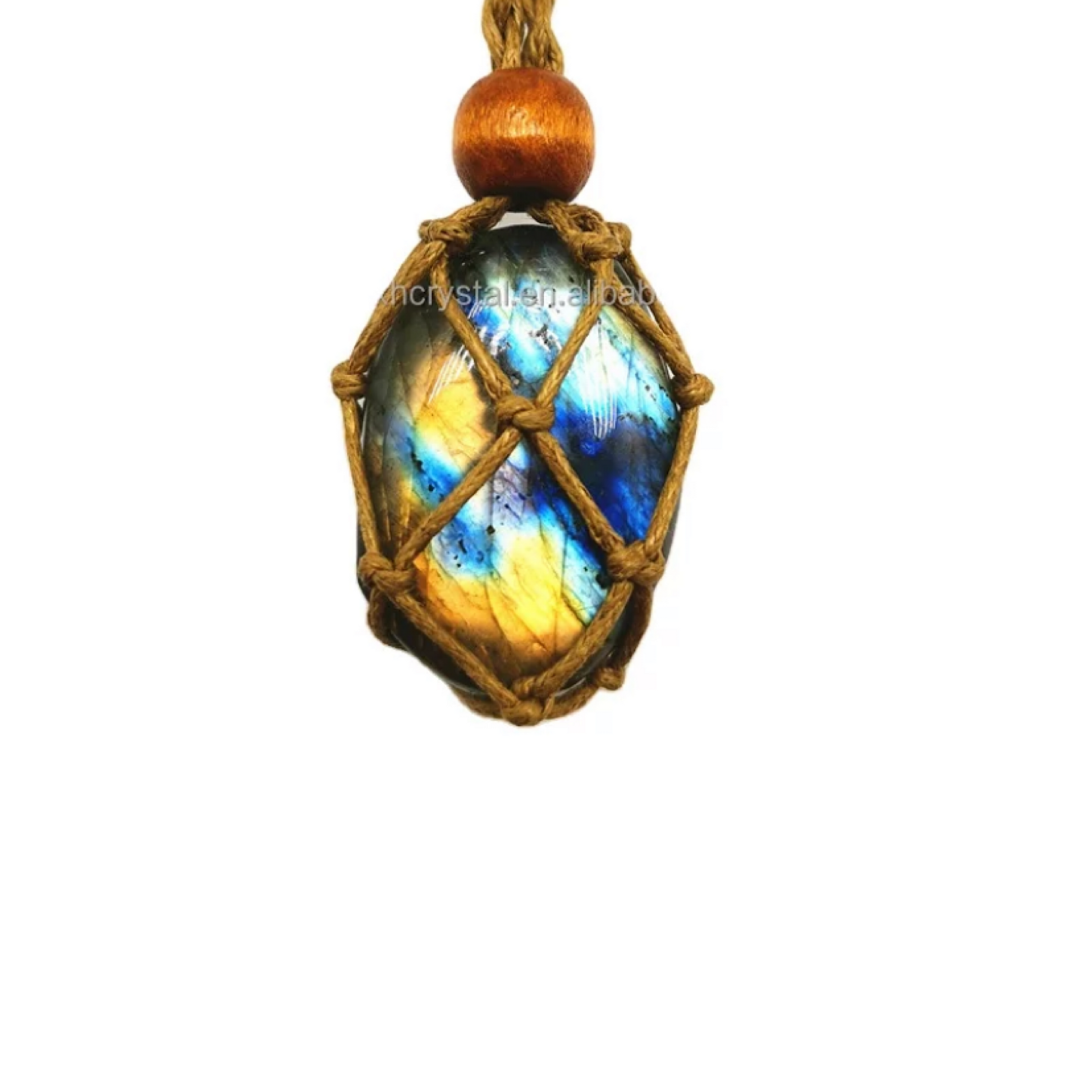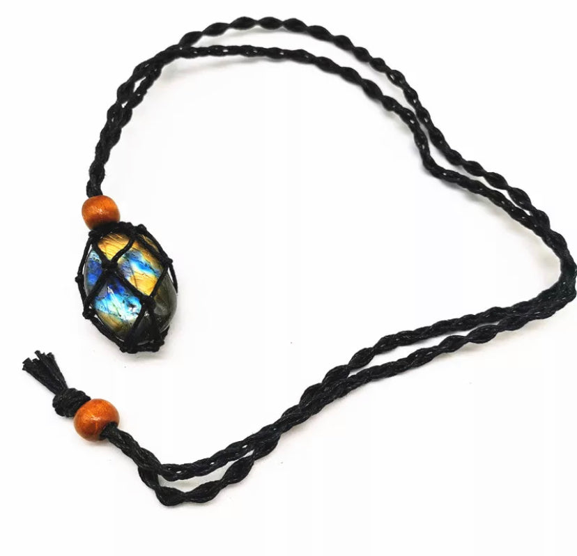 Natural Sunstone and Moonstone pendant divination necklace. Blue and yellow Representing Moon and sunshine the practice of seeking knowledge of the future.